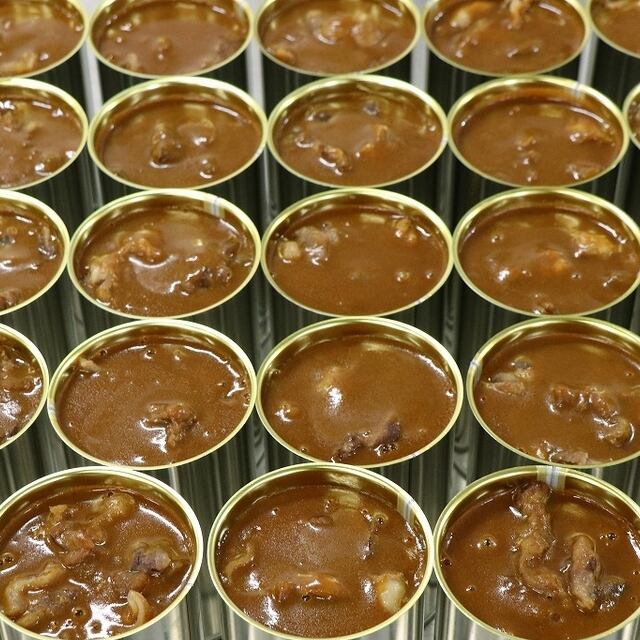 「飛騨牛カレー」は、1缶にA5等級の飛騨牛すじ肉(約120g)も入った、缶詰めタイプのカレー。1缶で2人前の量です。