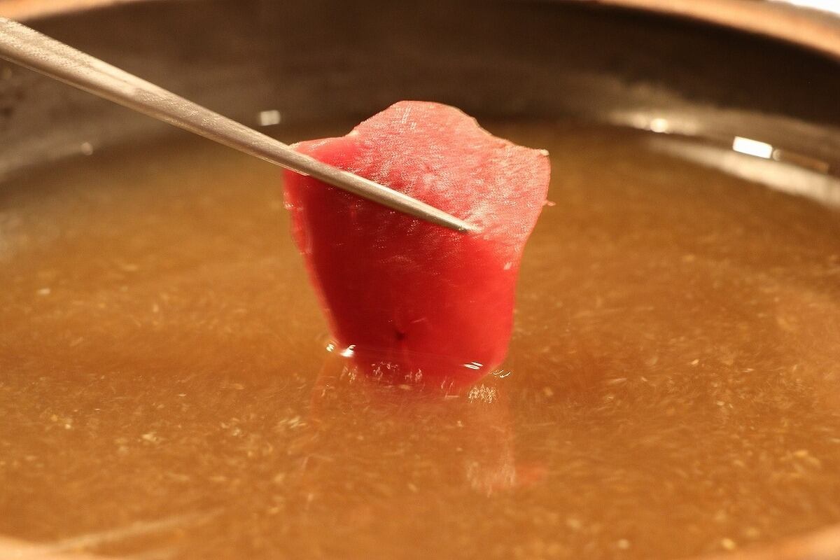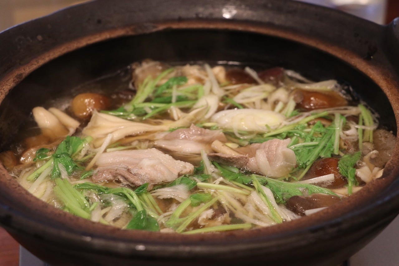 その後強火にし他の肉を加え再び沸いてきたら火を弱め白葱、三つ葉、セリなどをお好みで加えお召し上がりください。
